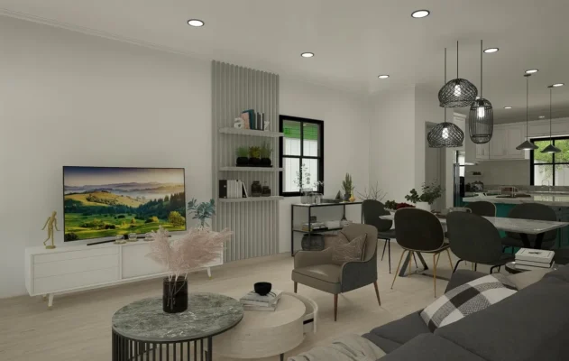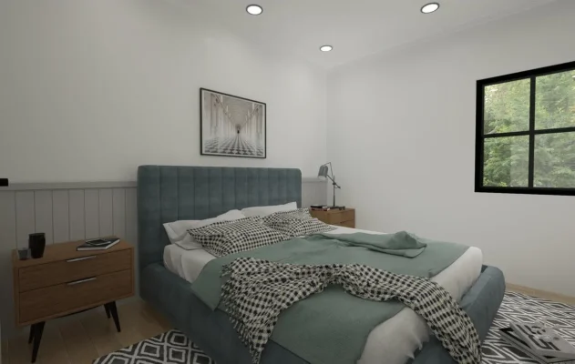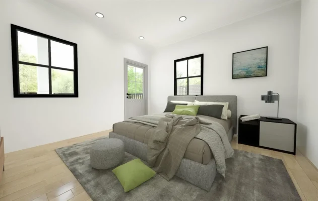 The Strategy: We designed a highly efficient 2-bedroom, 2.5-bath footprint that prioritizes “smart density.” Rather than wasting space on a sprawling lawn that requires maintenance, we focused the value *inside* the home and *upwards* toward the views.
